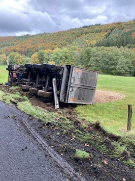 POL-OF: Von Fahrbahn abgekommen: Sattelzug mit Hackschnitzeln umgekippt