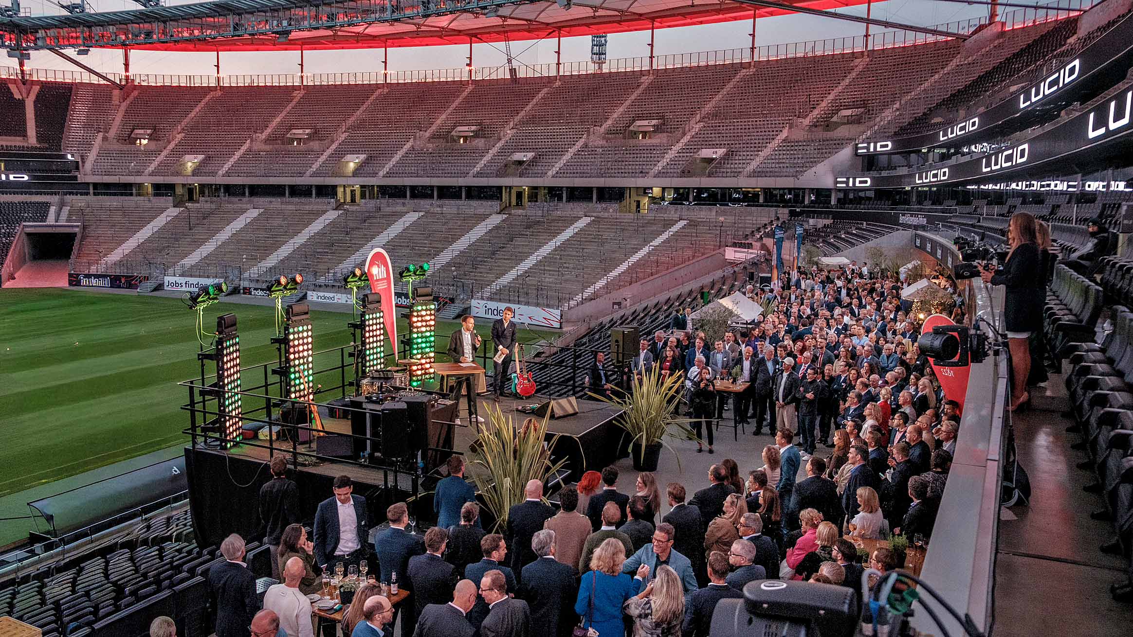 Beim Sommerempfang der Wirtschaftsförderung feierte sich Frankfurt für Rekord-Steuereinnahmen. Doch zwischen Sekt und Stadionblick mischte sich ein langer Werbeblock. Eine irritierende Spielunterbrechung. Wer braucht schon eine Kühltruhe, wenn er einen Lucid fährt? Im vorderen Kofferraum der Elektrolimousine badete der Weißwein im Eis, während eine Kellnerin perlende Gläser reichte. Willkommen beim Sommerempfang der Frankfurter Wirtschaftsförderung ,