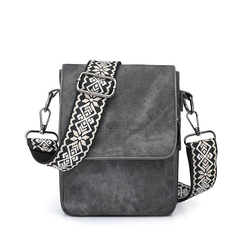 Du suchst nach einer kleinen, aber feinen Tasche, die deinem Outfit das gewisse Etwas verleiht? Diese charmante Umhängetasche im Vintage-Stil ist der perfekte Begleiter für jeden Tag. Ihr klares, einfarbiges Design wird durch den breiten, kunstvoll gemusterten Schultergurt zu einem echten modischen Statement.