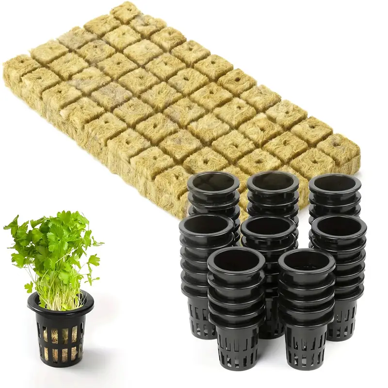 2. Die Glaswollwürfel: Perfekter Start ohne Erde Anstelle von Erde verwenden wir spezielle Glaswollwürfel (Rockwool). Diese Würfel sind steril, pH-neutral und haben eine perfekte Struktur, um Samen zu keimen und jungen Setzlingen Halt zu geben. Sie halten die Feuchtigkeit optimal, ohne zu nass zu sein, und geben den Wurzeln den nötigen Raum, um sich zu entwickeln. Der Samen wird einfach in den Würfel gelegt, und sobald der Keimling groß genug ist, wird der ganze Würfel in eine der Öffnungen des Turms eingesetzt. Kein Schmutz, keine Bodenschädlinge, kein Unkraut.