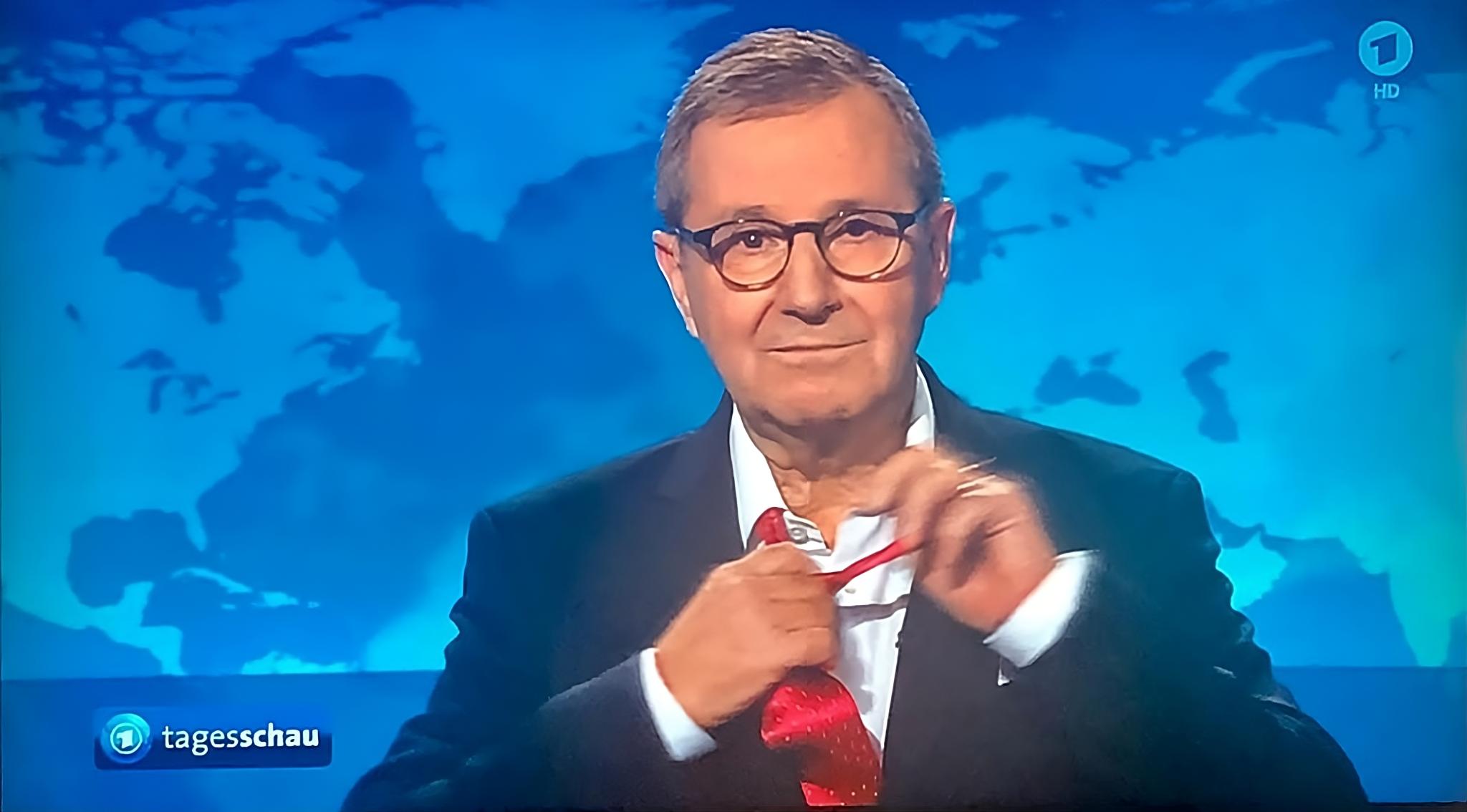 Zum Abschied in seiner letzten „Tagesschau“-Sendung legte Jan Hofer demonstrativ seine pinke Krawatte ab. Ein stilles, aber eindrucksvolles Zeichen. (Foto: privat)